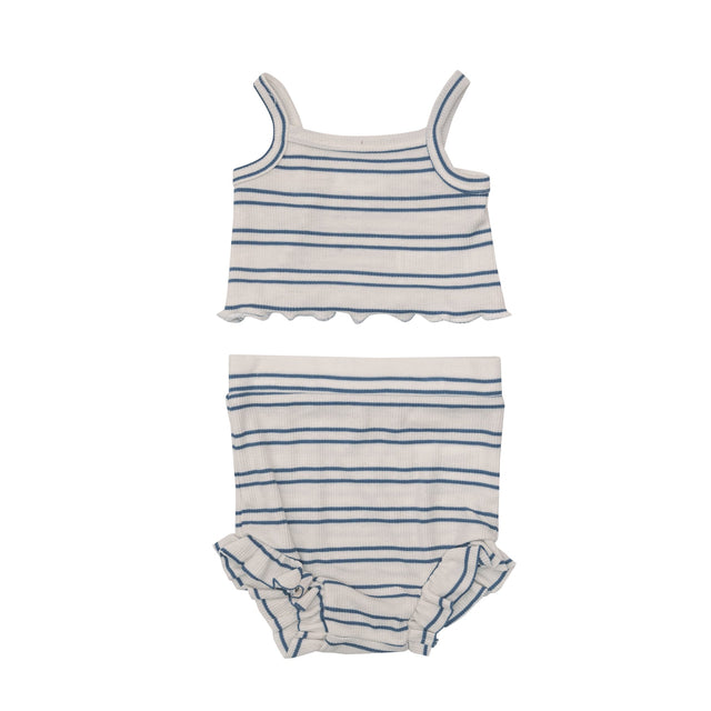 Crop Top & High Waist Short in Blue Stripe Rib by Angel Dear