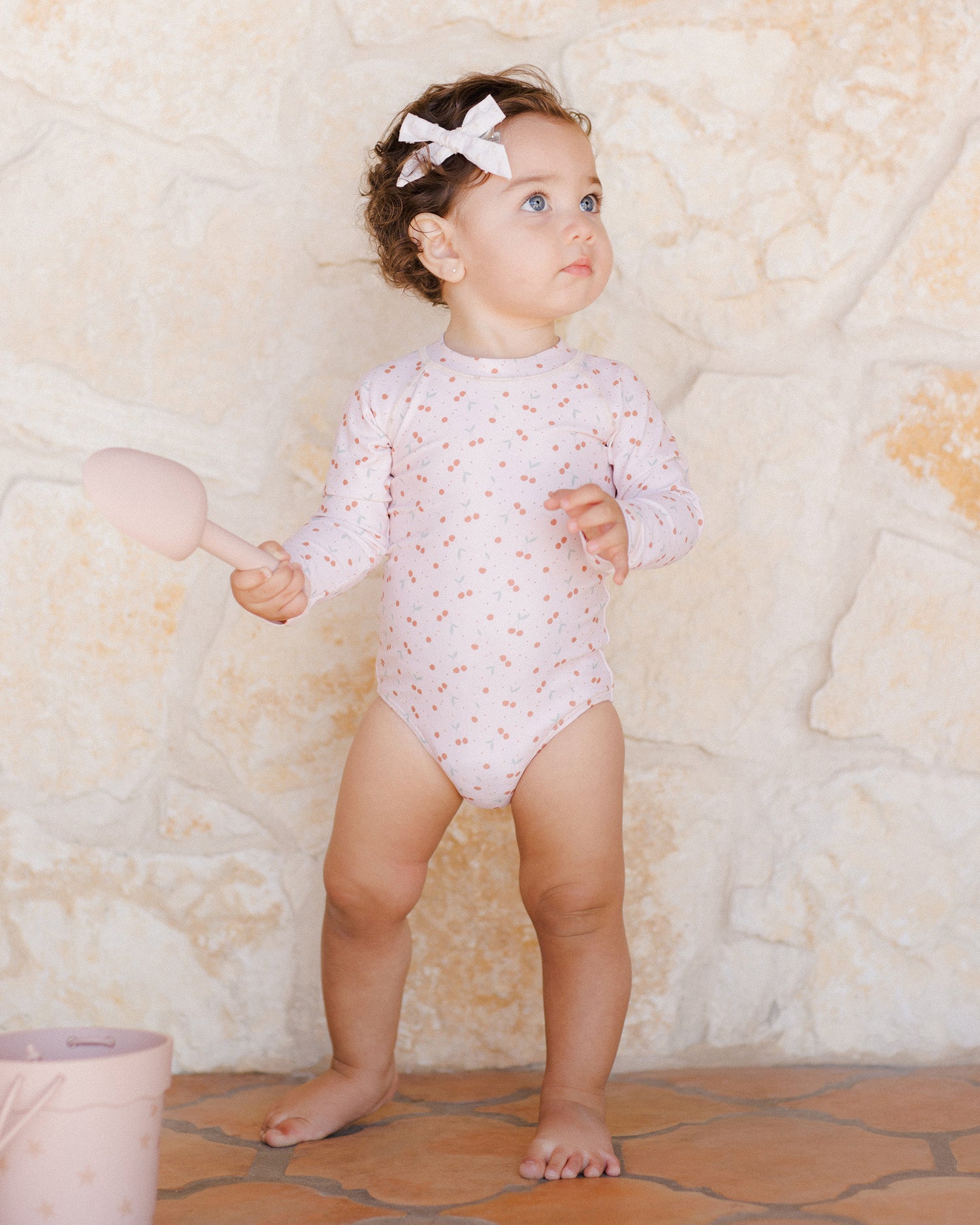 Delphine Rashguard One-Piece || Cherries by Rylee + Cru - 0/3M is backordered and will ship as soon as it is back in stock.