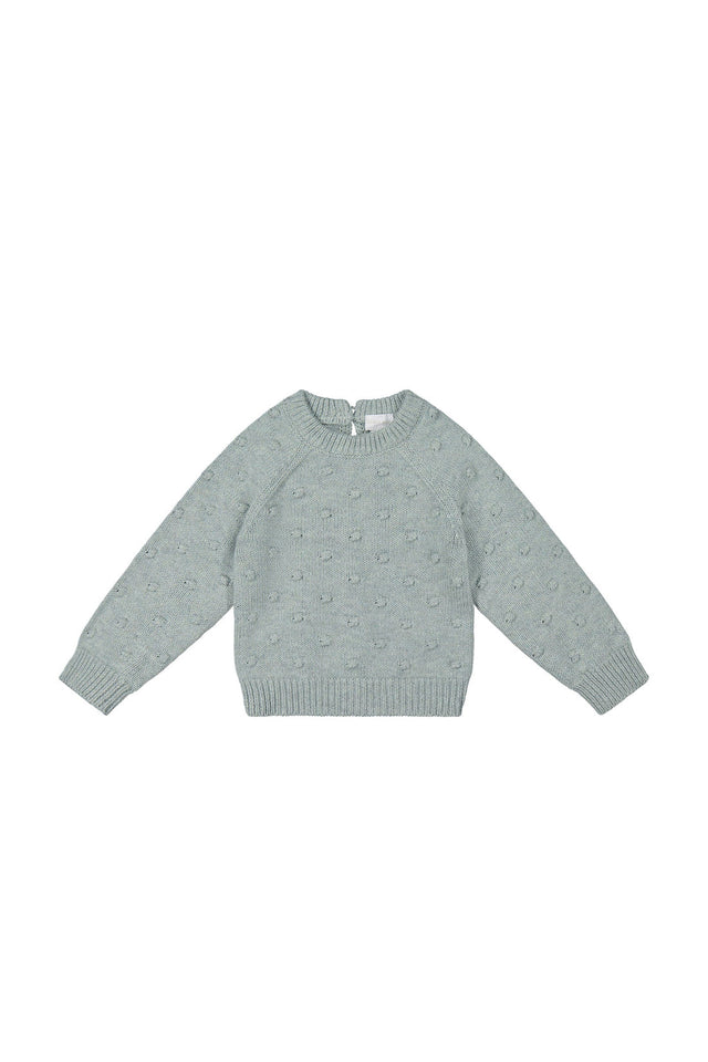 Dotty Knit Jumper - Mist Fleck by Jamie Kay - 0/3M is backordered and will ship as soon as it is back in stock.