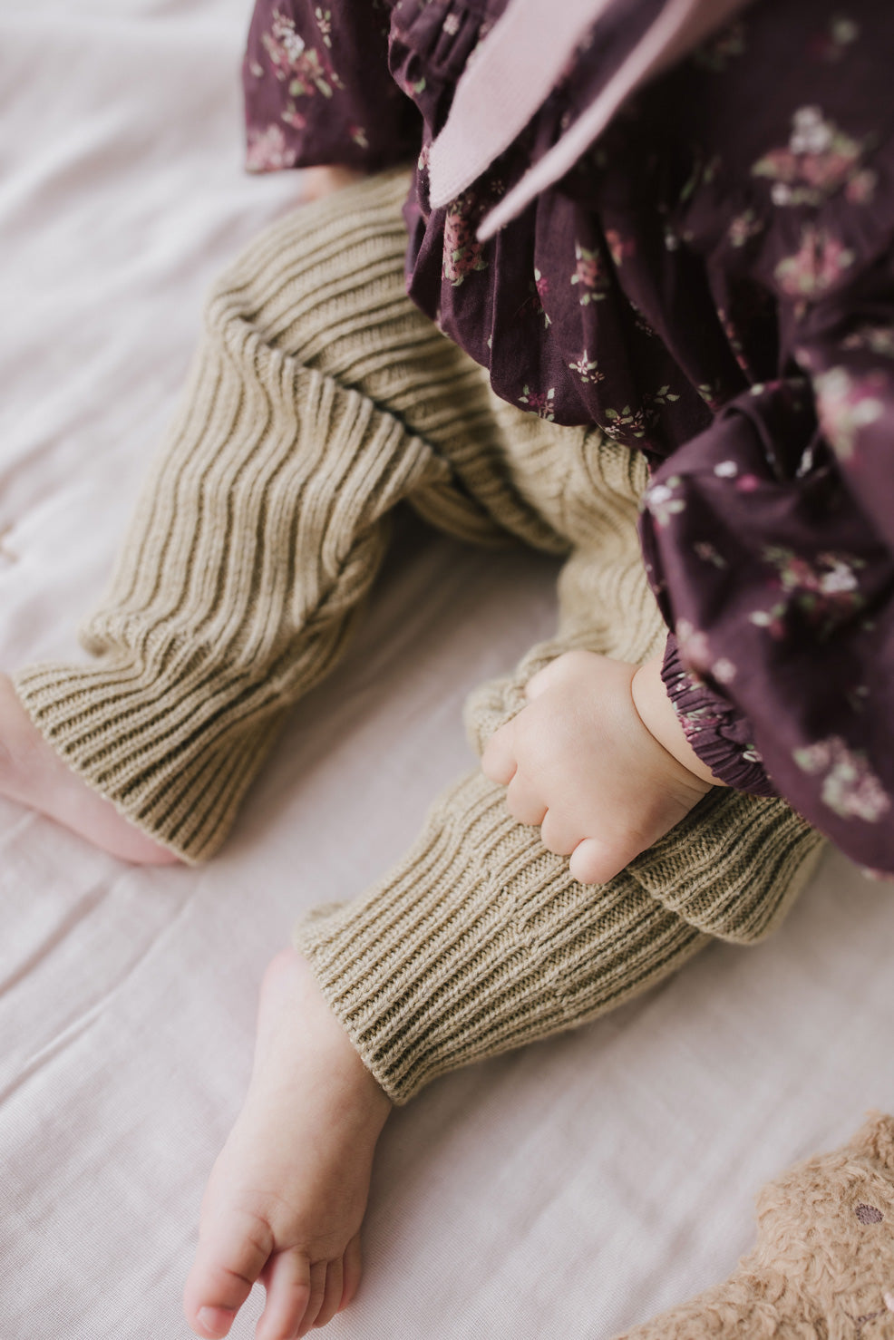 These super soft and snuggly knitted pants will keep those little legs warm and comfortable. Featuring an elasticated waist and decorative waist tie and buttons.