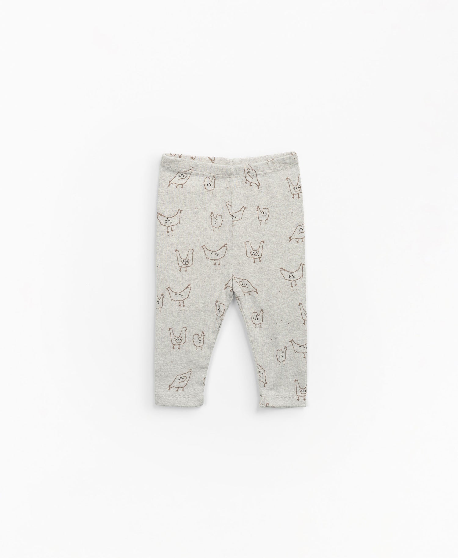 These jersey-stitch leggings are made of a mixture of organic cotton and cotton, Artur colour. The model has an elastic waist and our chickens print.