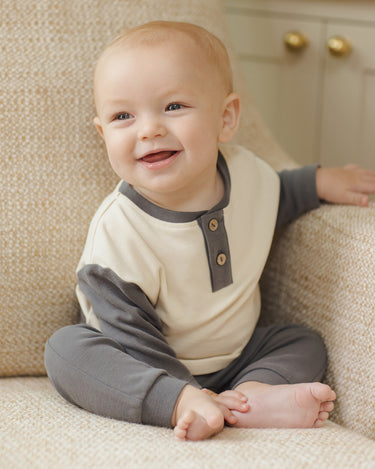Long Sleeve Henley Tee || Indigo by Quincy Mae - 0/3M is backordered and will ship as soon as it is back in stock.