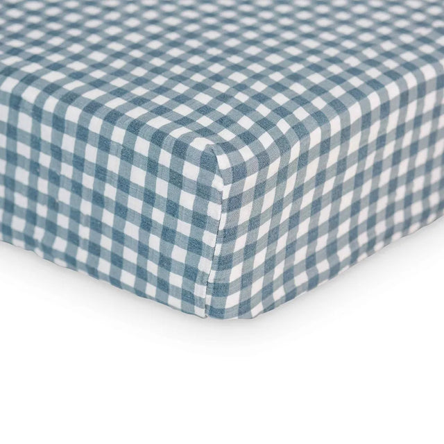 Lulujo Crib Sheet in Navy Gingham by Mary Meyer