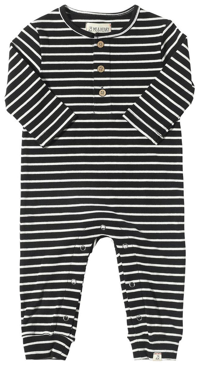 Mason Ribbed Romper - Black/White Stripe by Me & Henry