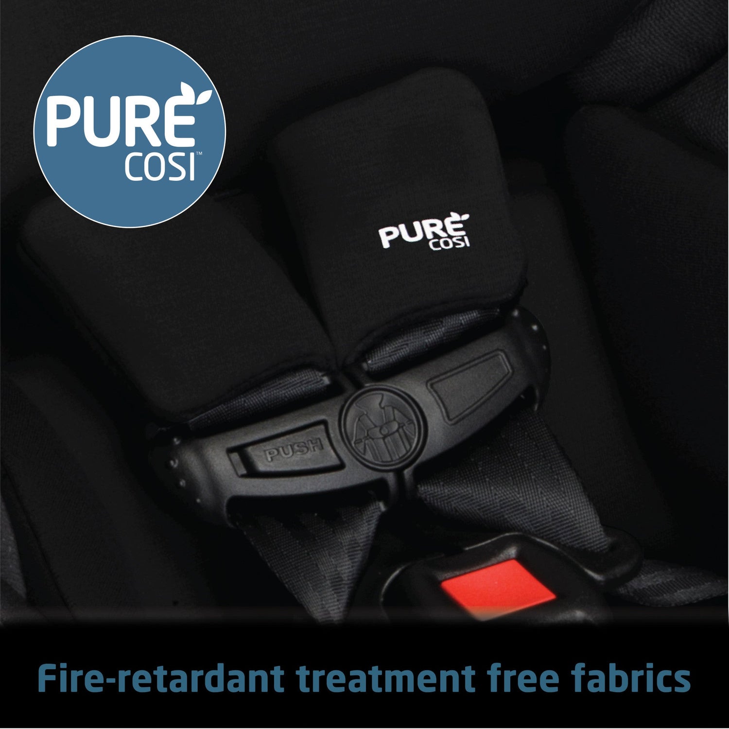 - Car seat features PureCosi fabric made without wool or added fire-retardant treatment