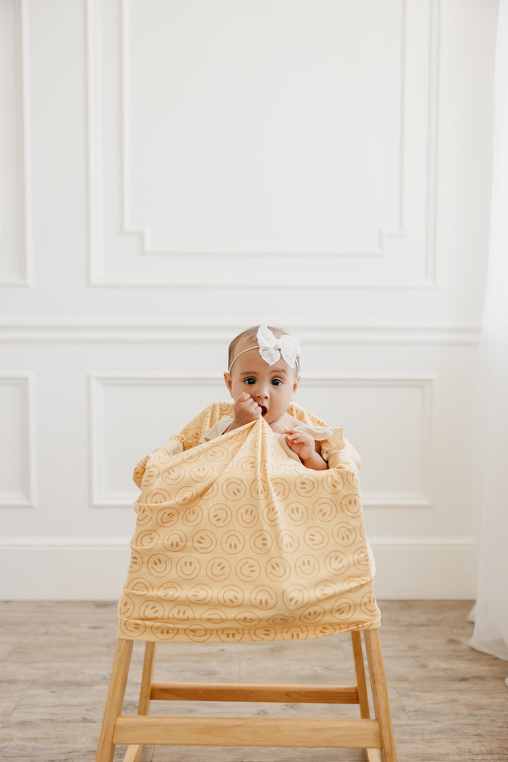 Stretchy fabric fits most all car seats, shopping carts, high chairs and nursing mothers. It can also be a trendy infinity scarf!