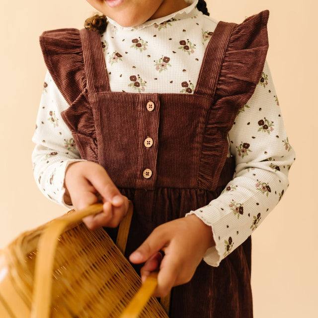Tee made with organic cotton knit and dress with organic cotton corduroy • Tag less for added comfort against baby's skin • Azo free, non-toxic, eco-friendly dyes • Responsibly made at a GOTS certified factory In India