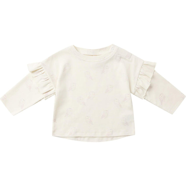 Quincy Mae Ruffle Long Sleeve Tee || Snow Owls