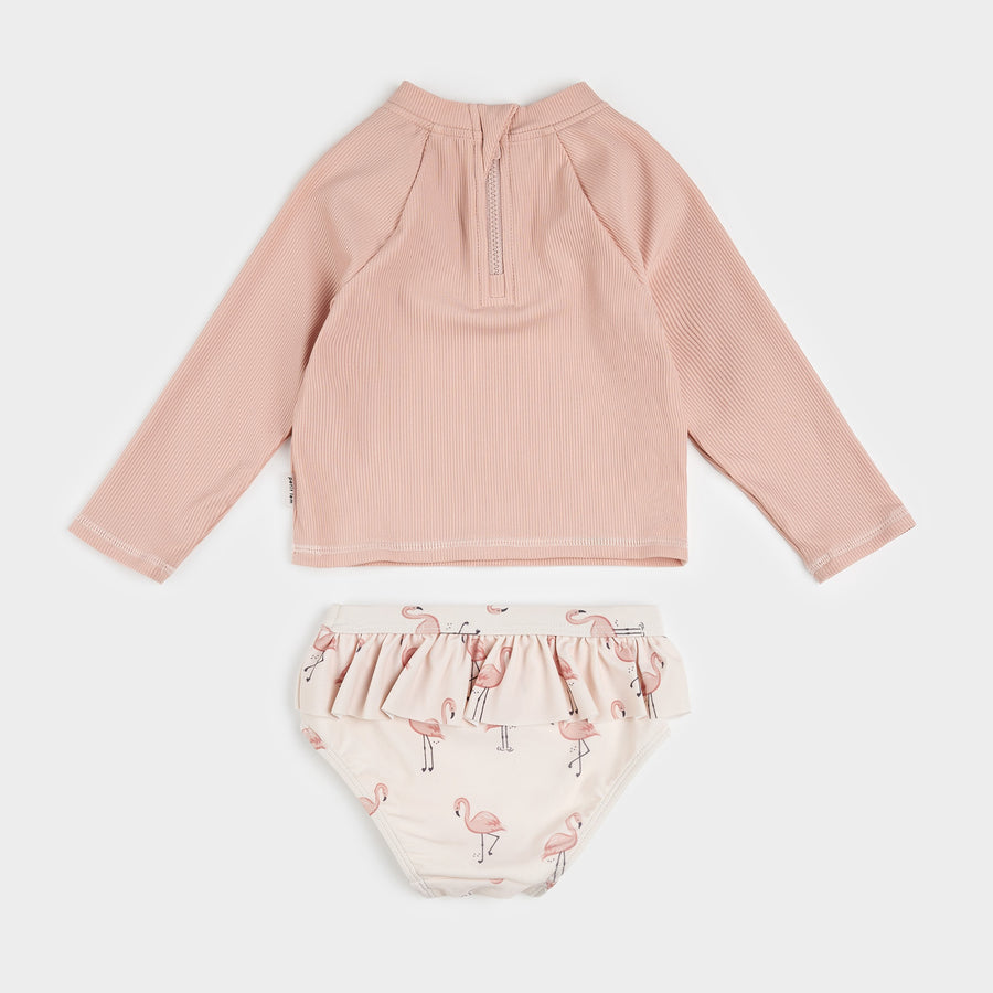 Ribbed Long-Sleeve Rose Quartz & Flamingos Rashguard Set by Petit Lem