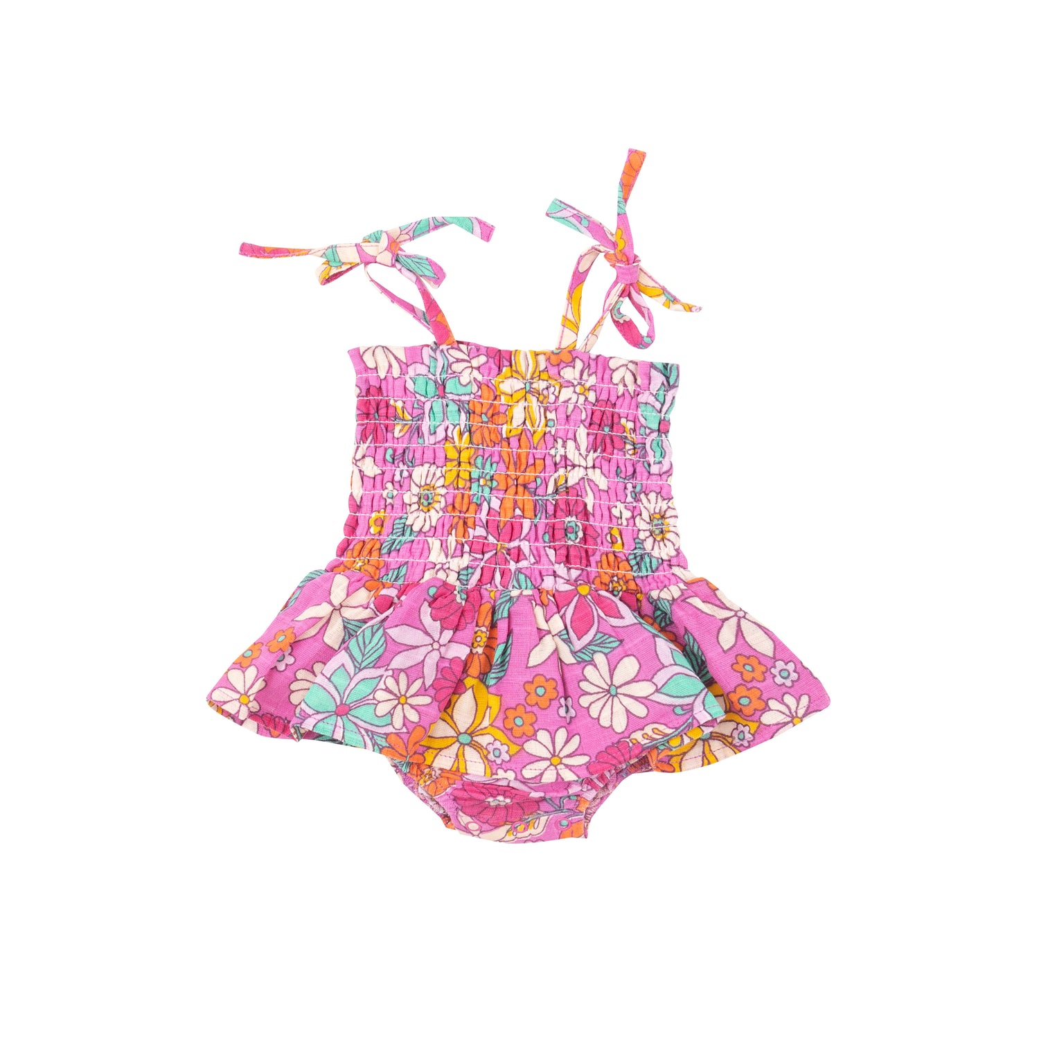 Smocked Bubble with Skirt - Tropical Retro Floral by Angel Dear
