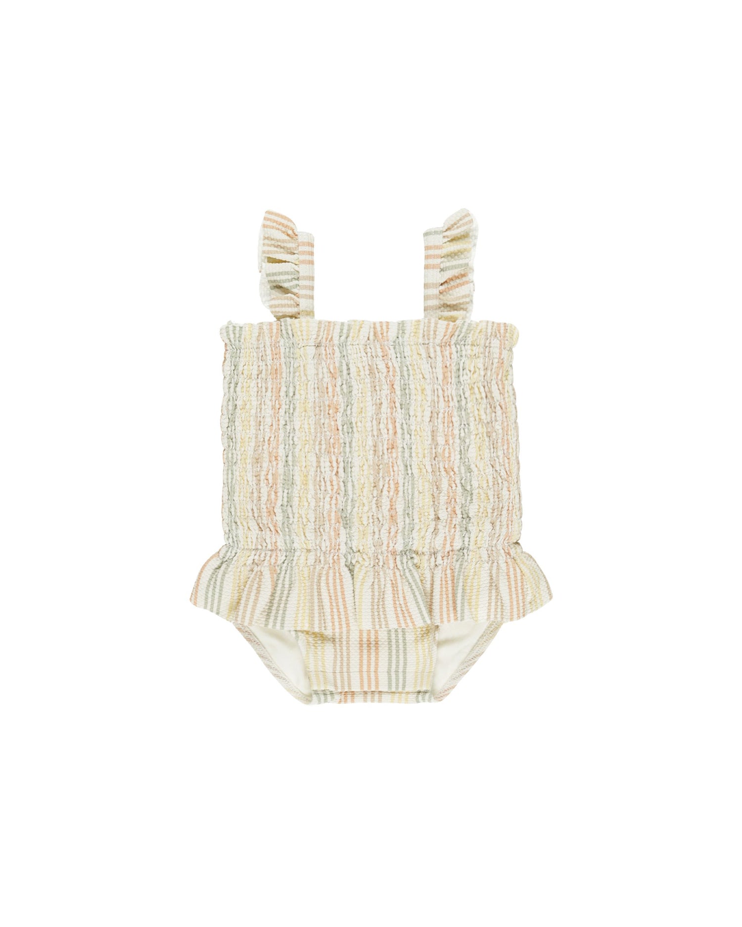 Smocked One-Piece Swimsuit || Multi Stripe by Quincy Mae