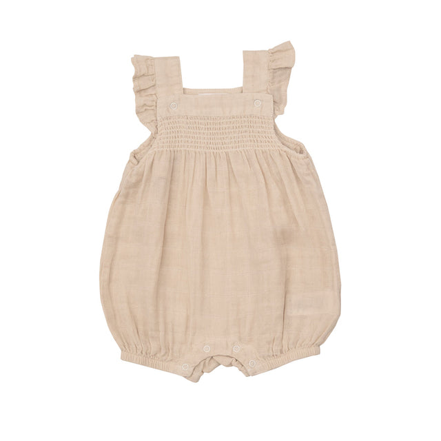 Smocked Overall Shortie in Soft Linen by Angel Dear
