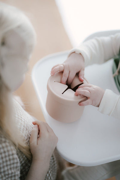 The spill-proof lid made from soft silicone is designed to easily fit little hands as they reach for snacks, while keeping snacks contained. An interchangeable fully closed lid keeps snacks fresher longer, keeping them extra secure while on the move. Made from food grade silicone that is microwave and dishwasher safe, it’s easy to clean, durable, and long-lasting. The Silicone Spill-Proof Snack Cup is available in an array of calming, modern colors for your little one.