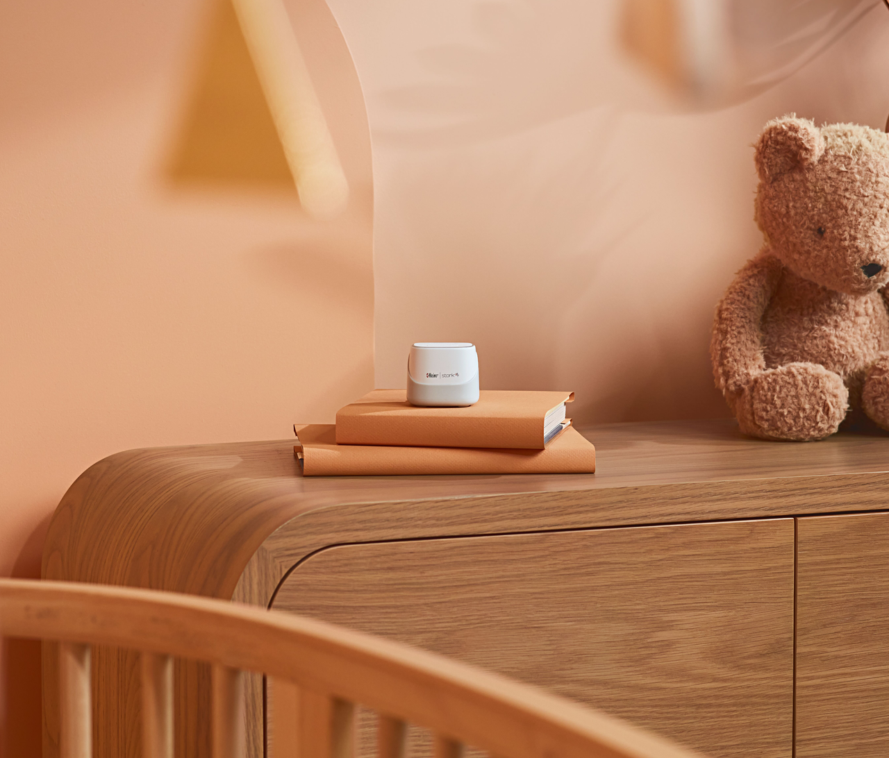 Expand your ability to track your baby’s health data with the Hub, which transfers data collected by the Stork boot and sensor to the Stork App. If your baby sleeps over at grandma's, a nearby hub will ensure you can still track your baby’s health data with Stork. Never miss a beat.