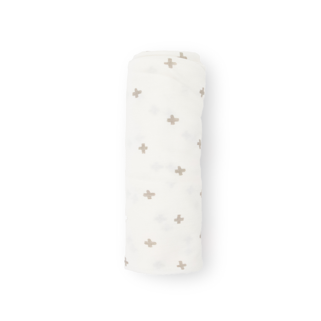 Stretch Knit Swaddle Blanket - Grey Cross by Little Unicorn