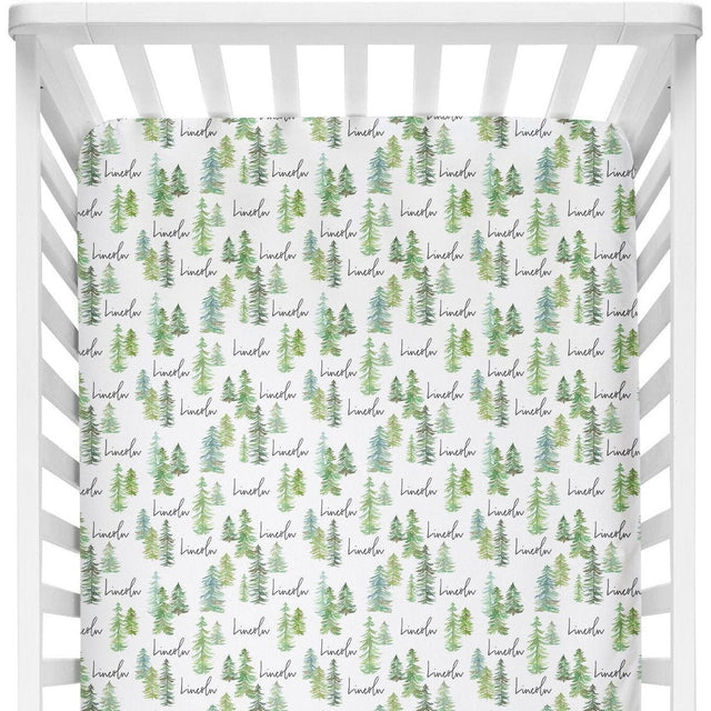Sugar + Maple Personalized Crib Sheet | Pine Tree