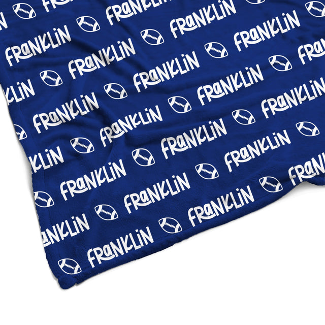 Sugar + Maple Plush Minky Fleece Personalized Blanket | Football Icon Repeating Name