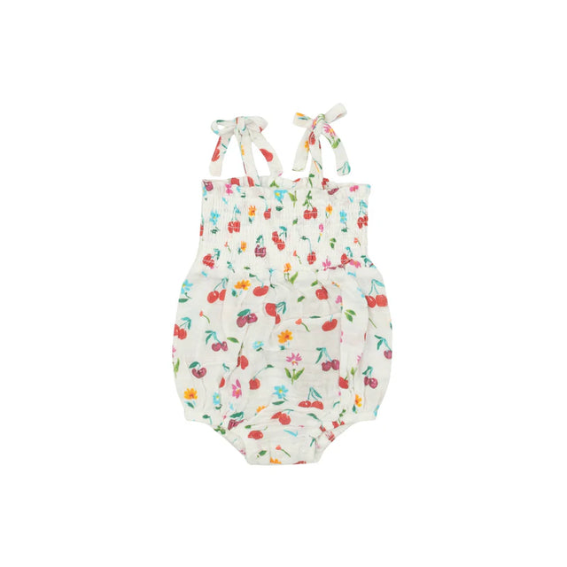 Tie Strap Smocked Bubble - Cherry by Angel Dear