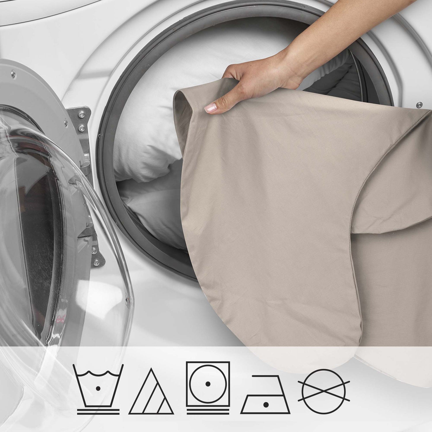 Machine wash using mild detergent, delicate cycle, 30°C/85°F. Tumble dry low on delicate cycle. Only non-chlorine bleach when needed. Cool iron as needed. Do not dry clean. See label on pillow for care instructions.