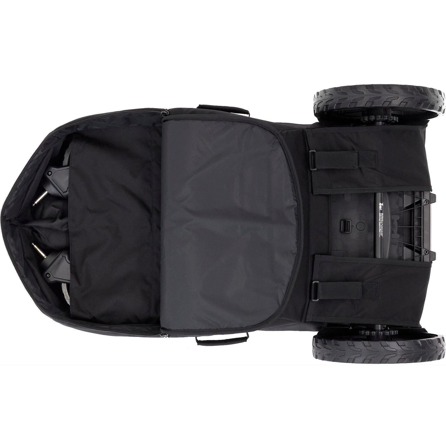 Like its more tailored counterpart, Travel Bag for All-Terrain Cruiser & Accessories is the perfect jetway companion for the All-Terrain Cruiser or All-Terrain Cruiser XL. Padded in all the right places and made of rugged 600D fabric, our travel bag keeps your All-Terrain Cruiser safe when checked at the gate. Simply stand your All-Terrain Cruiser upright, slide the bag on top, fasten the Velcro tabs and unzip the other side to pack your swivel wheels and accessories. The bag itself folds flat for easy storage.