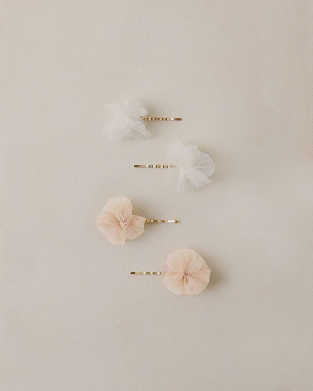 Add a delicate yet playful touch with these pom pom tulle hair pins.