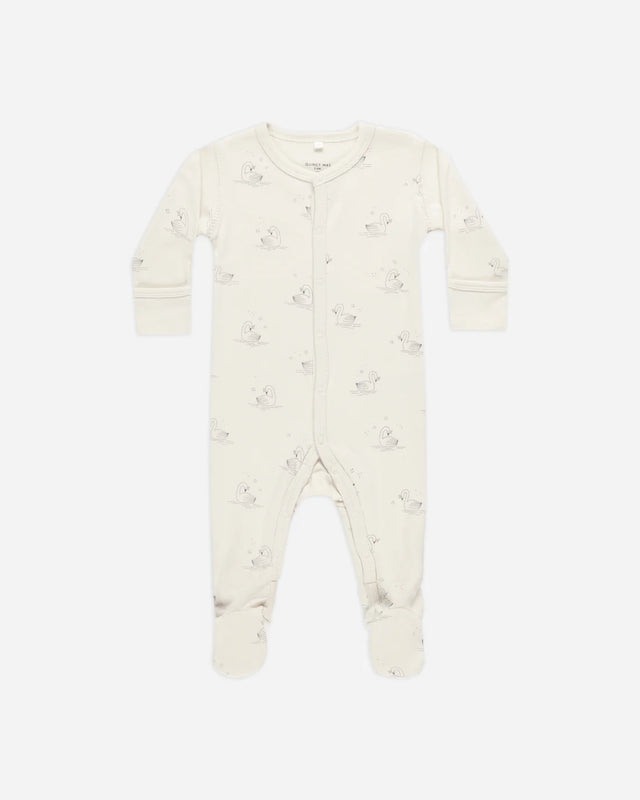 Full Snap Footie || Swans by Quincy Mae - NB is backordered and will ship as soon as it is back in stock.