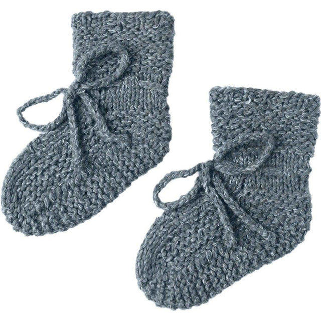 Adorable knit booties with ties at the ankle for a snug, secure fit.
