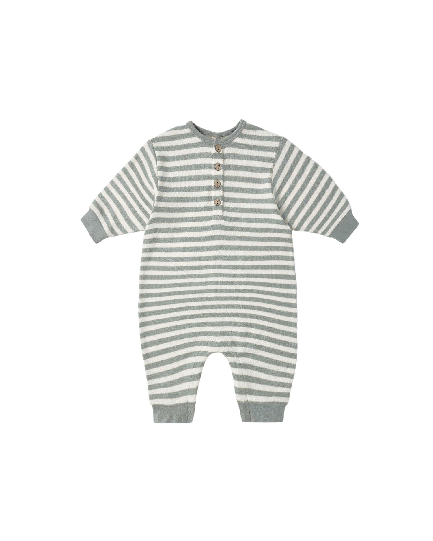 Relaxed Jumpsuit || Blue Stripe by Quincy Mae - 3/6M is backordered and will ship as soon as it is back in stock.