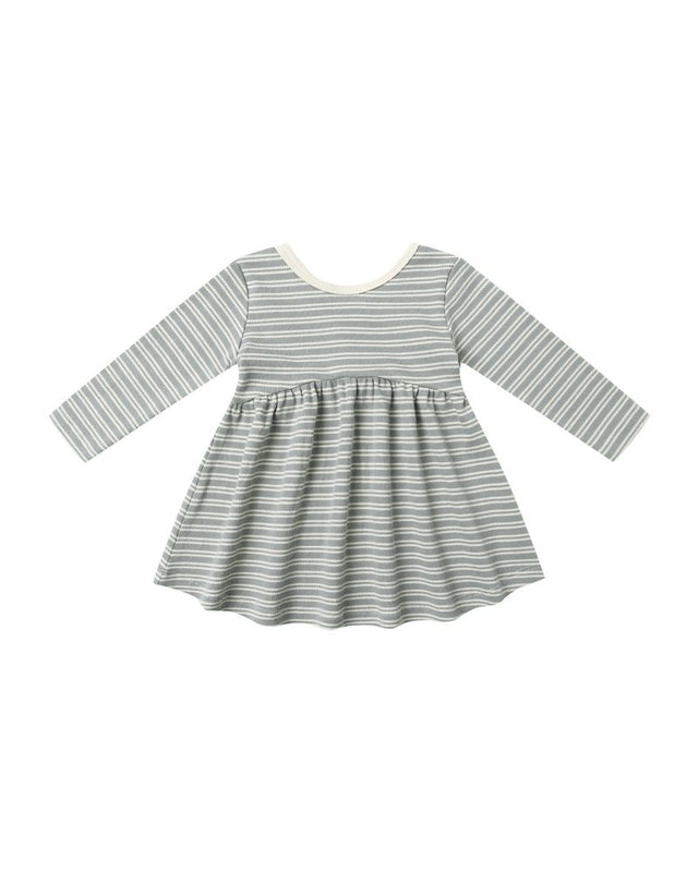 Ribbed Long Sleeve Dress || Steel Blue Micro Stripe by Quincy Mae - 0/3M is backordered and will ship as soon as it is back in stock.