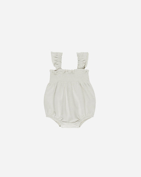 $ 44.00Unit price /UnavailableSmocked Ruffle Sleeve Romper || Sky Micro Stripe by Quincy Mae