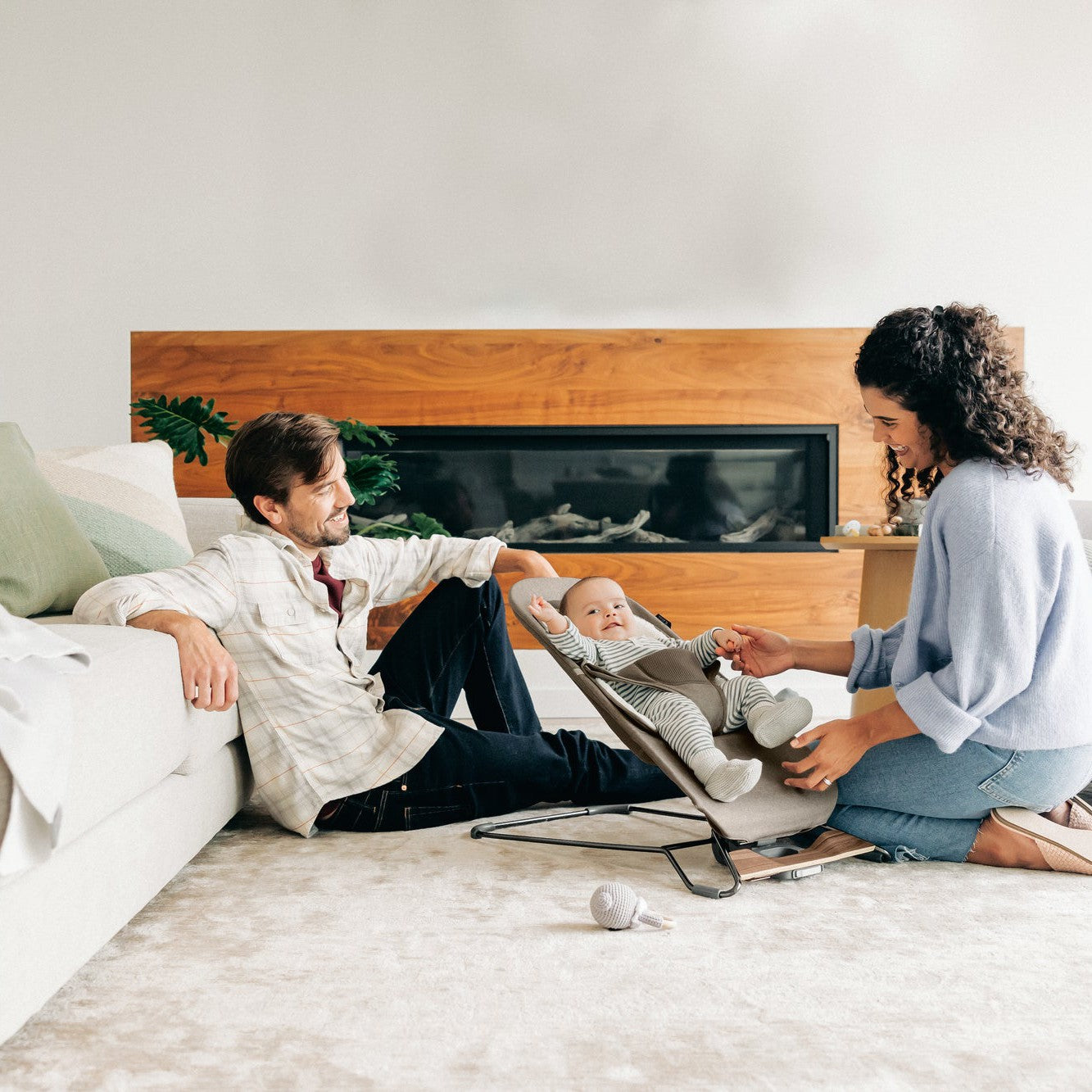 A cozy place to play or lay, the Mira was designed to soothe and comfort baby while keeping them close. Following their natural movement, the 2-in-1 bouncer and seat gently rocks to their rhythm from newborn to toddler.