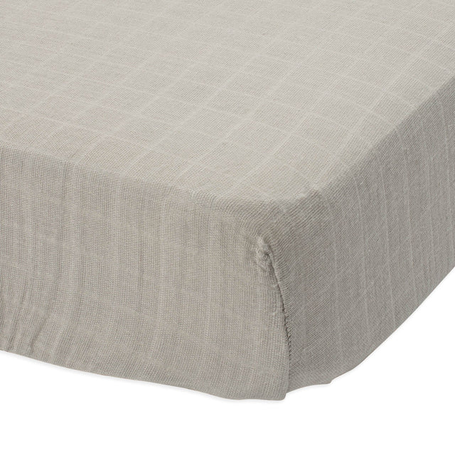 Cotton Muslin Crib Sheet in Warm Grey by Little Unicorn