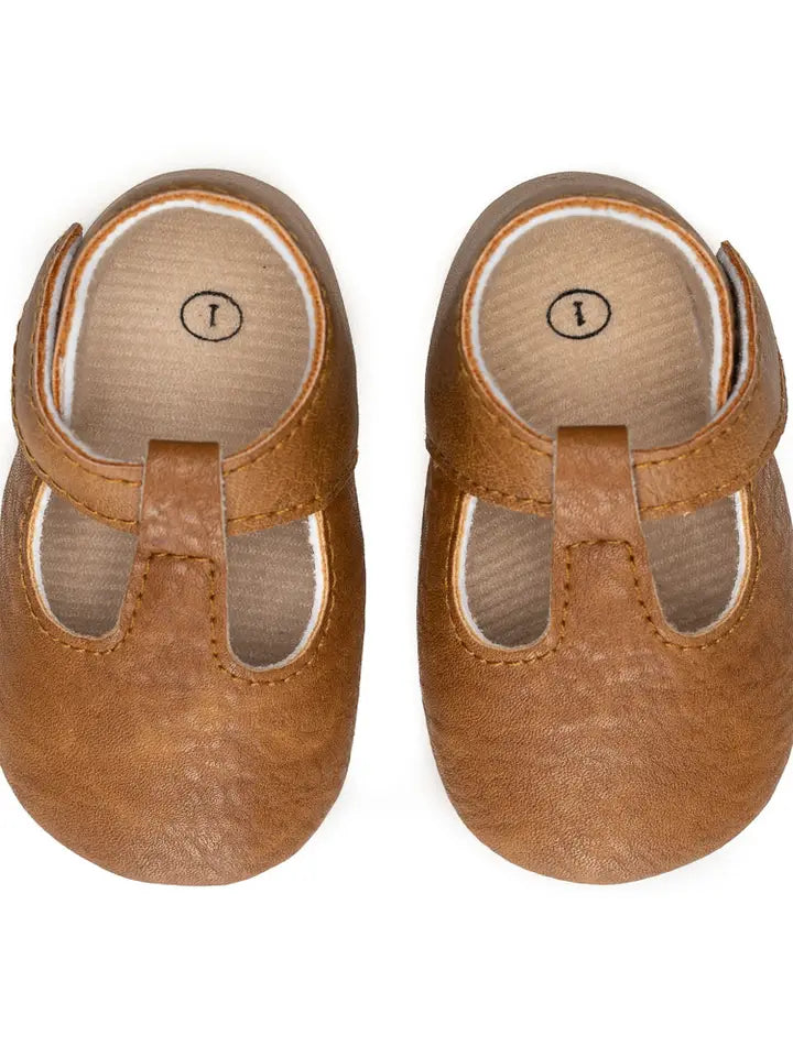 The Moxy® is our most popular shoe style, and for good reason! With an elastic T-strap band, the Moxy® is easy to put on and take off while remaining snug to your child's foot. Each shoe is lined with cotton to keep the foot dry and warm. Sizes 4 and up come with a hard sole for any new walking child in your home!Details