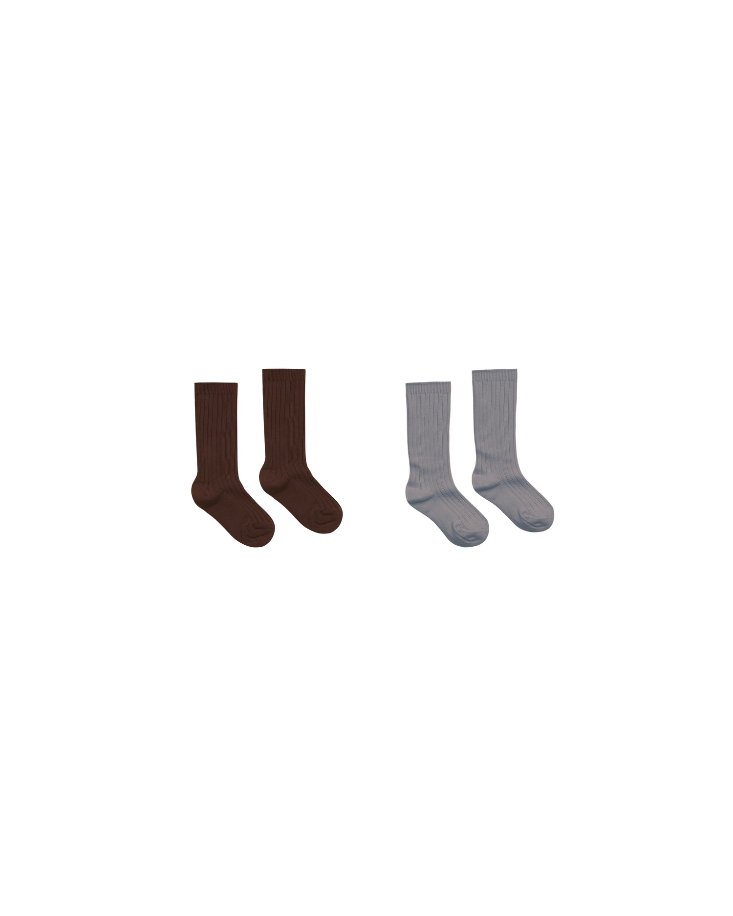 Ribbed Socks, 2-pack | Brown, Dusty Blue by Rylee + Cru