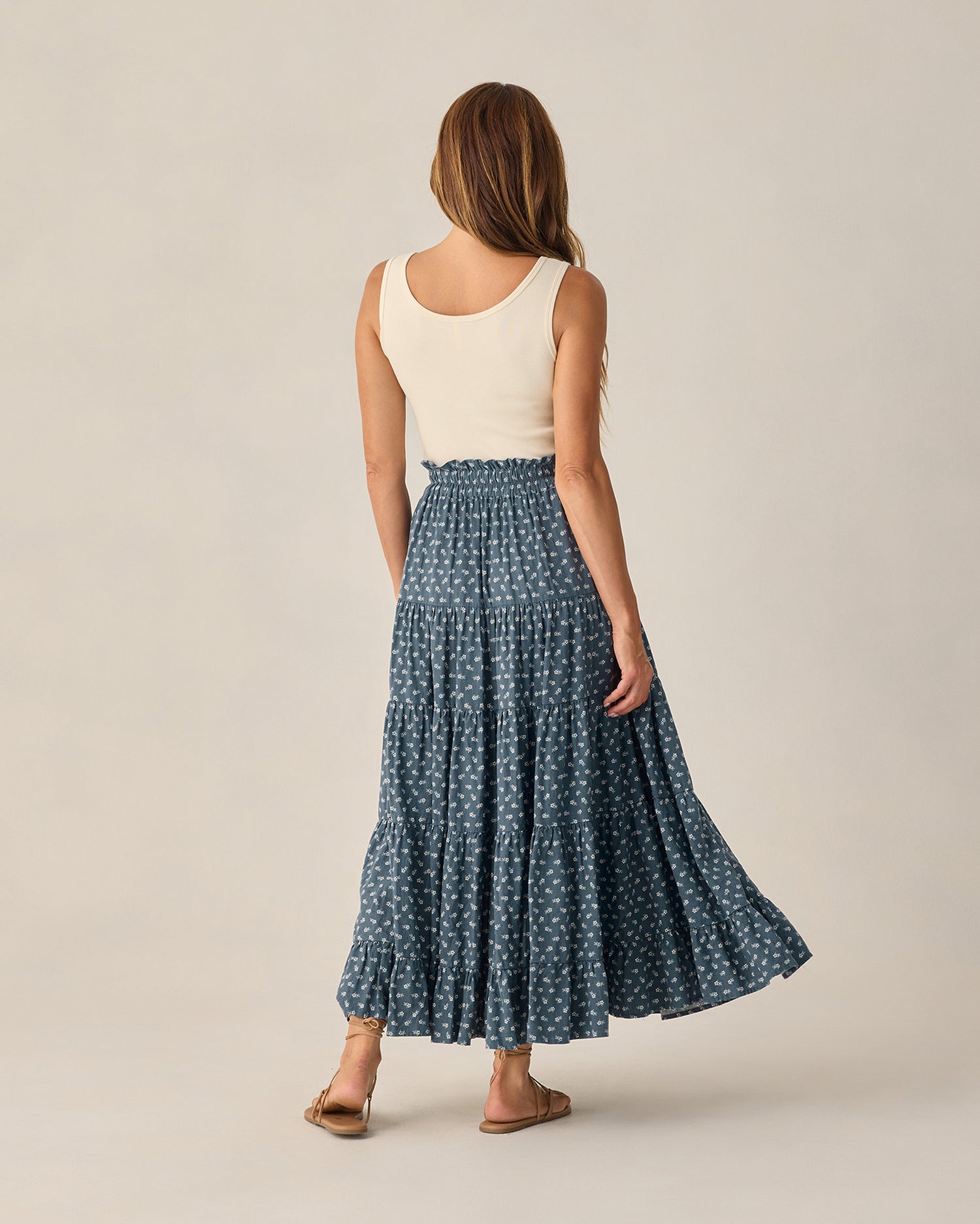 Women's Ruffle Tiered Maxi Skirt | Marine Ditsy by Rylee + Cru