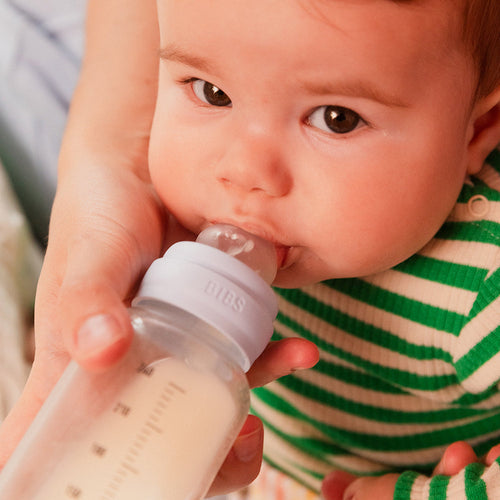 Ready to upgrade your feeding routine? BIBS’ Glass Baby Bottle offers a sleek, award-winning design with an anti-colic valve to reduce gas and reflux, and a breast-like nipple that eases the transition between breastfeeding and bottle feeding. Featuring a dishwasher-safe, durable glass base that maintains a like-new appearance over time, and spill-minimizing components for convenient feeds at home or on the go. The ultra-soft, hypoallergenic medical-grade silicone nipple is easy to sterilize, reinforced with ribbing for added durability, and includes an anti-slip texture for a secure latch. Comes with a slow-paced flow, with additional flow rates available as your baby’s feeding pace changes. BPA-free / Ages 0+