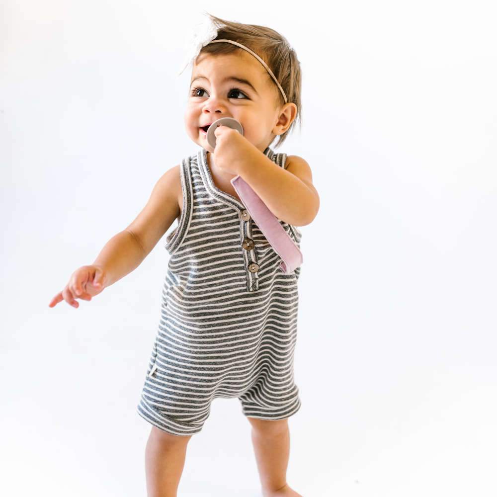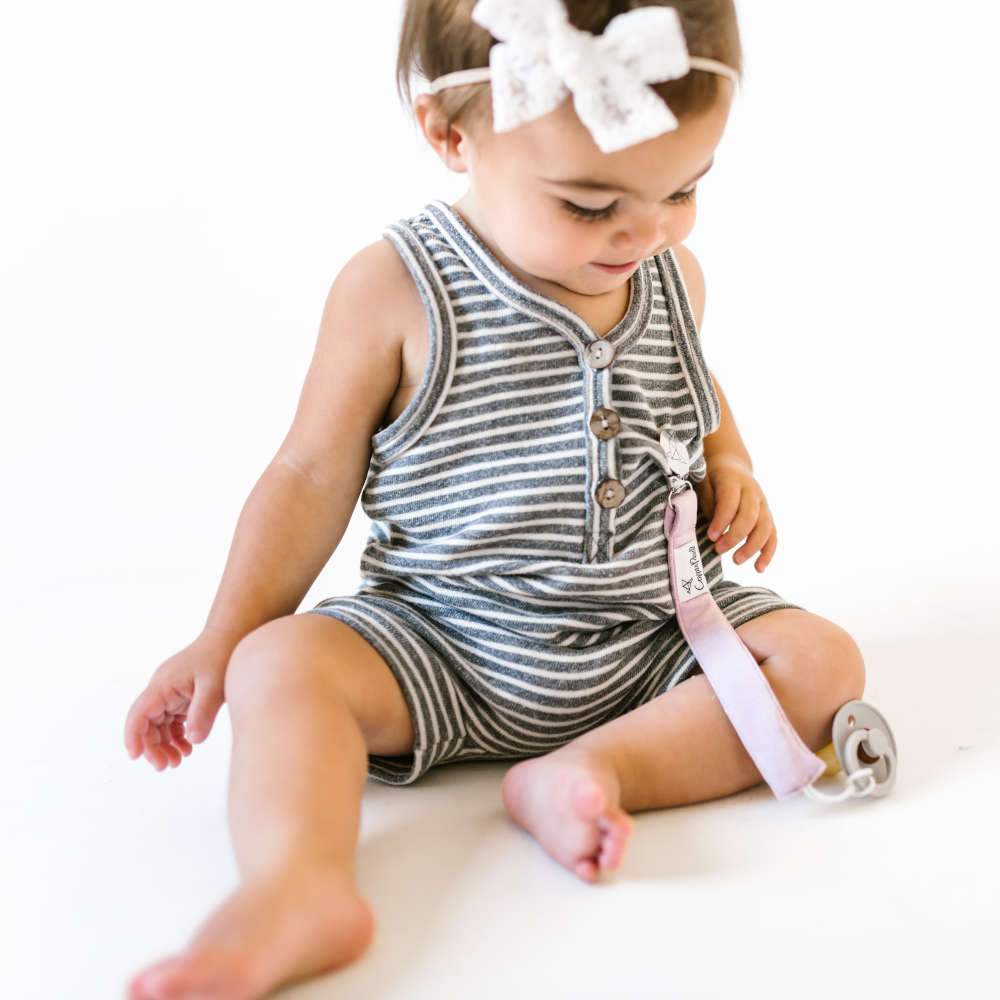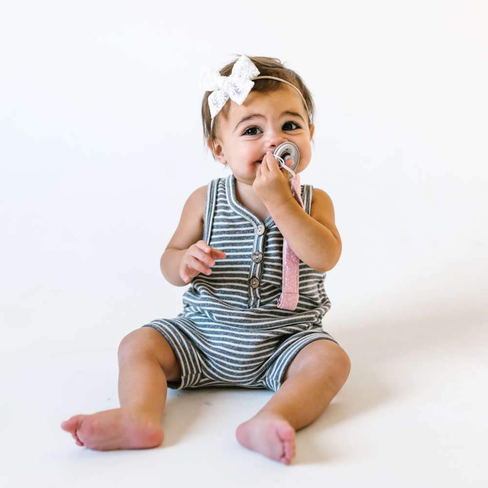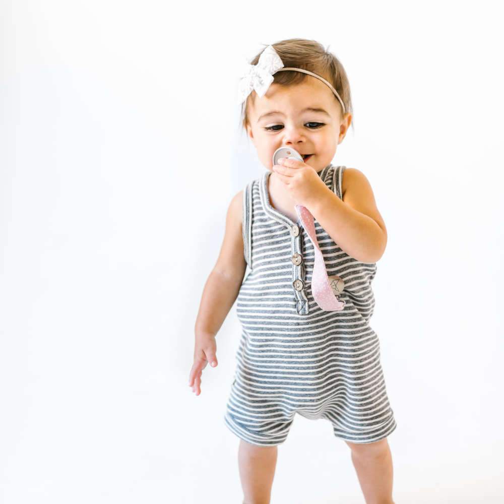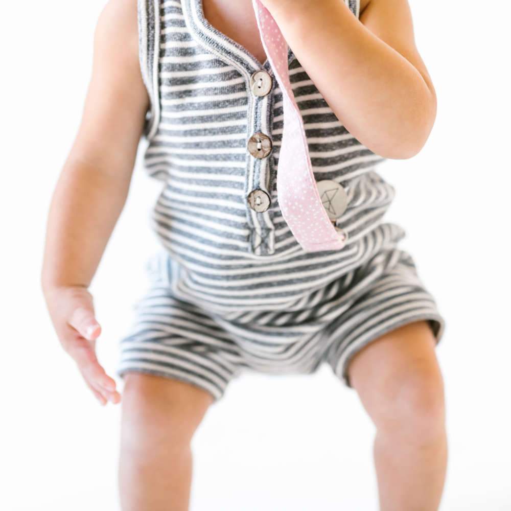 Offering the ultimate blend of fashion and function, our unique Binky Clip features a premium knit strap lined with absorbent fleece to help soak up drool. Simply attach baby's pacifier or teether to one end, then fasten the clip to clothing, blankets or baby gear. Oh, and by the way our set includes three Binky Clips to keep with you wherever you go - no more floor drops or pacifier pick-ups!
