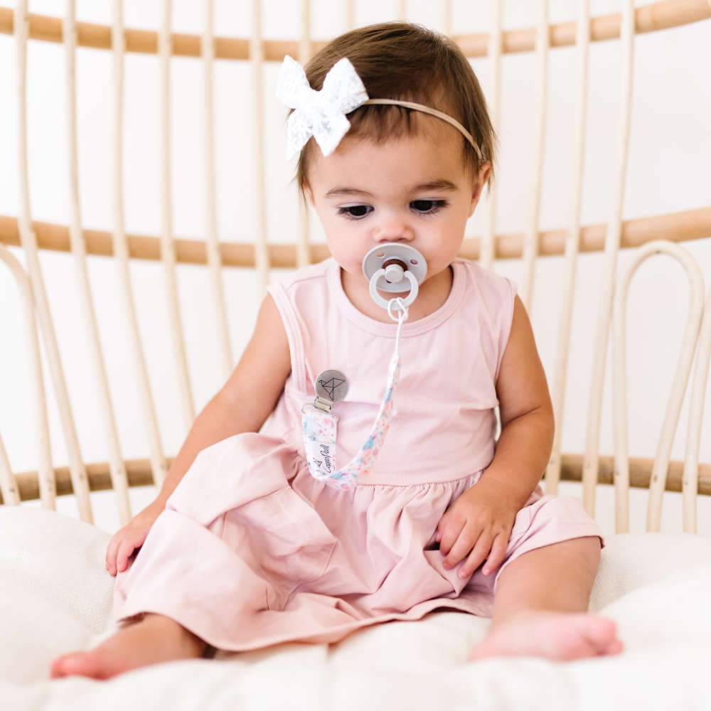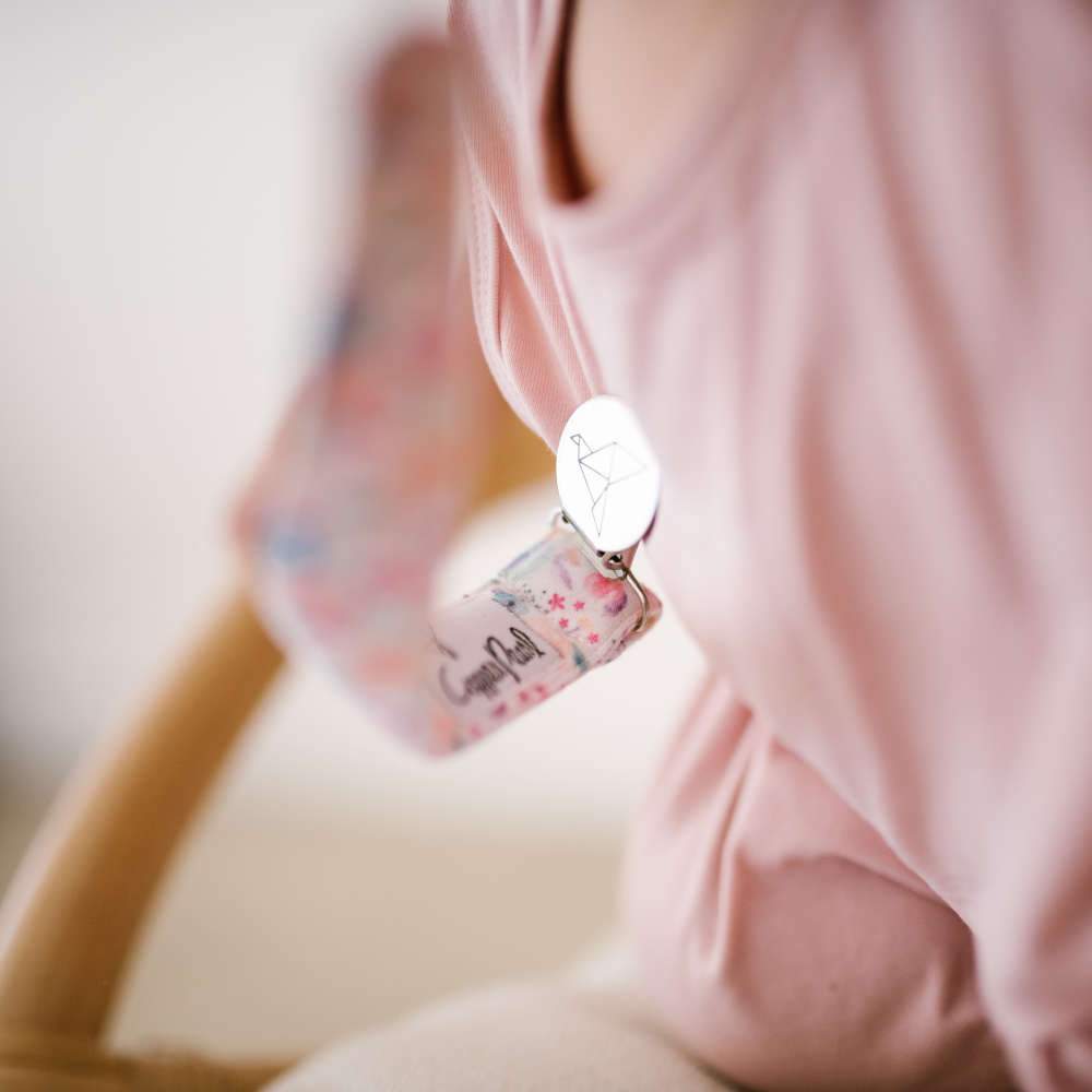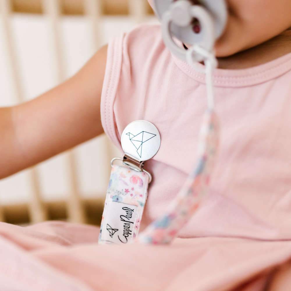 Binky Clip Set in Bloom by Copper Pearl is backordered and will ship as soon as it is back in stock.