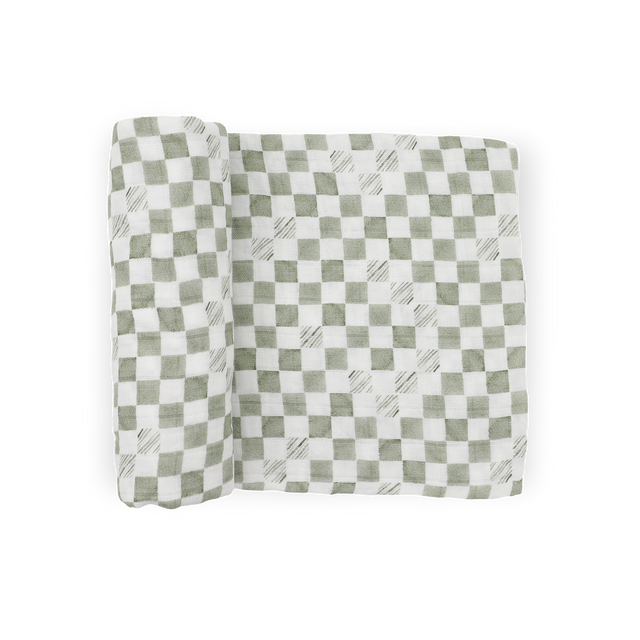 Organic Cotton Muslin Swaddle Blanket - Green Checker by Little Unicorn