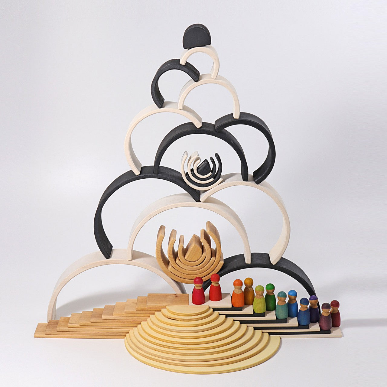 The Monochrome Tunnel is really versatile: small children stack, sort and build and as the children get older they will use it as a cradle for dolls, as fence for animals, like a tunnel or bridge for vehicles, as house for dwarfs and dollhouse dolls, build amazing sculptures... this Tunnel will always be integrated in playing with a lot of fantasy. Our monochrome toys are designed with maximum reduction in both form and color. And the high contrast in color as well as textured surfaces of the monochrome series of toys help to develop individual needs. Children with visual handicaps will be motivated to discover the world around them by discerning a more visible world. These multi-sensory toys with simple forms, high contrast coloring will aid in development and stimulation of particular senses.