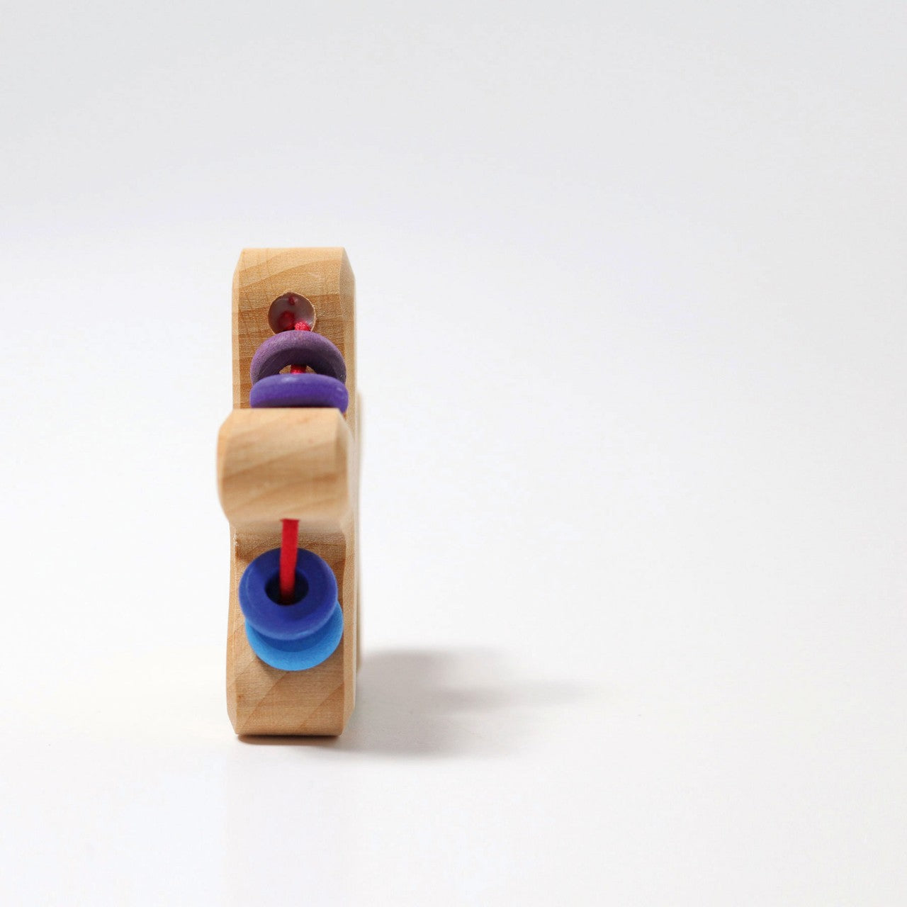 This air loom quality rattle star with ten rainbow colored wooden discs is perfect for your special little one. The wood used from the alder tree is very special and gives unique structure to each of our rattles and grasping toys. The plant based oil finish protects the wood and accentuates this vivid structure.