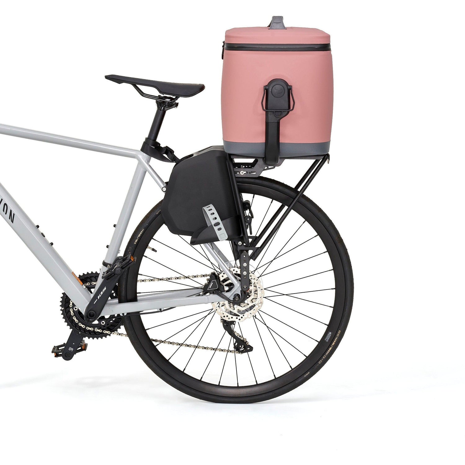 Triple the size of our Lunch Cooler, this 18 liter soft cooler is large enough to pack multiple meals, snacks, and drinks for the entire family, yet lightweight and easy to carry by its handle or padded shoulder strap. Veer’s patented quick release Switchback hubs allow you to quickly snap onto &Roll, &Jog, &Bike, &Chill or Cruiser and snap off by lifting the shoulder strap or handles. Side handles lock the cooler in place when flipped down, and unlock when flipped up.