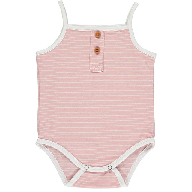 Meet the Karter--ultra soft and retro inspired!  With its adorable white piping and button detail, this little onesie is unique and versatile.  It pairs perfectly with our Remi Bloomers.