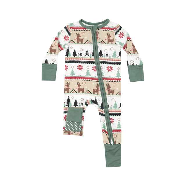 2-Way Zipper Romper - Reindeer Fair Isle by Angel Dear