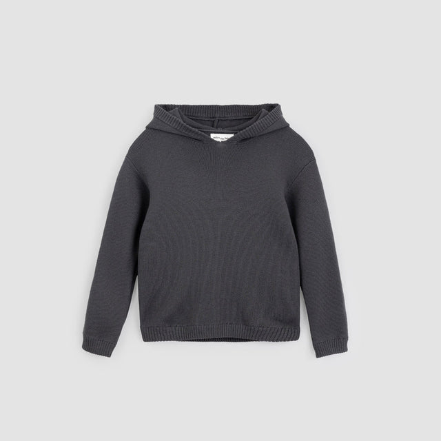 Grey Knit Hooded Sweater by miles the label. - 3/6M is backordered and will ship as soon as it is back in stock.