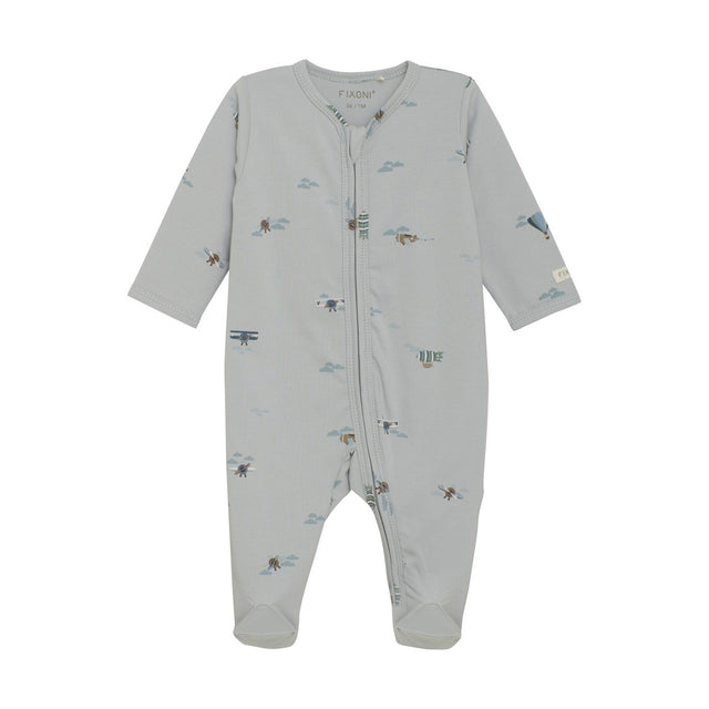 Nightsuit from FIXONI. The nightsuit has an all-over-print and feets. The suit opens with practical zipper in the front, to make sure that it comes on and off easily. Certified acc. to GOTS - organic CERES-0366