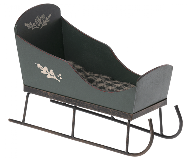 Mini Sleigh in Green by Maileg is backordered and will ship as soon as it is back in stock.