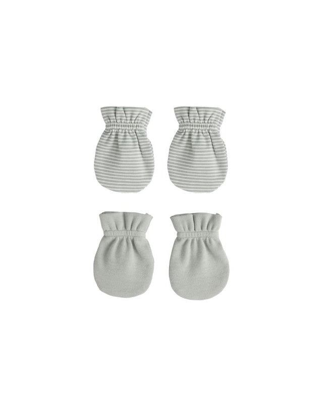 No Scratch Mittens Set || Sage Micro Stripe, Sage by Quincy Mae