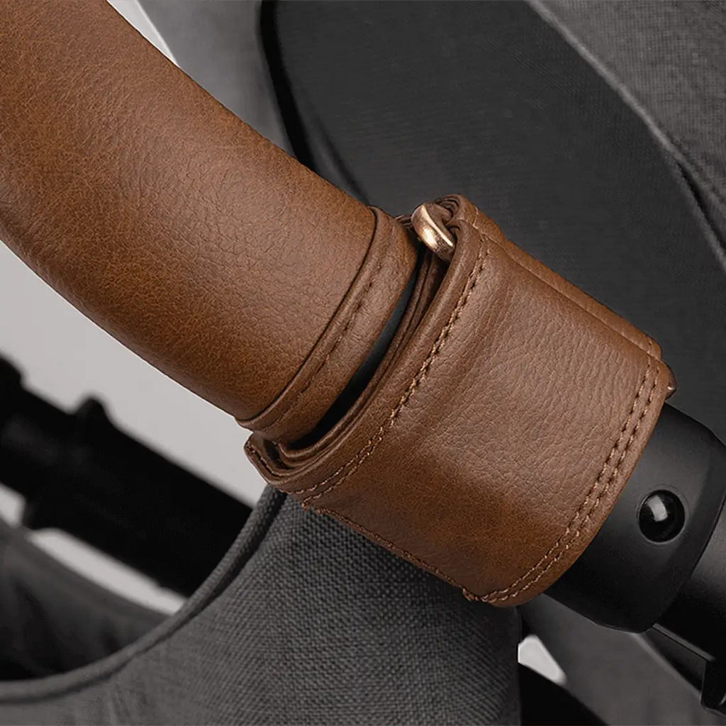 • Leatherette straps securely attach to stroller pushbar keeping it in reach