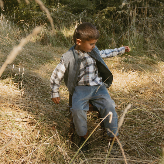 Organic Collared Long Sleeve Shirt- Plaid Checks by Makemake
